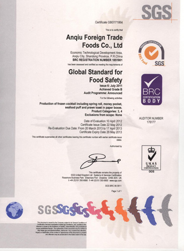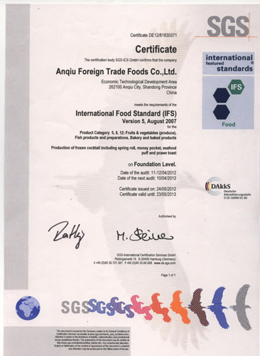 公司產(chǎn)品通過(guò)HACCP,BRC,IFS認證