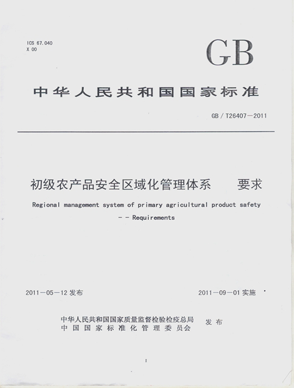 公司參與制定《初級農產(chǎn)品質(zhì)量安全區域化管理要求》(GB/T26407-2011)國家標準。