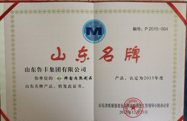 2015年11月,魯豐集團生產(chǎn)的“魯豐”牌熟肉制品榮獲山東名牌產(chǎn)品。這是繼“魯豐”牌水果罐頭榮獲中國名牌產(chǎn)品、“魯豐”商標榮獲中國馳名商標、“魯豐”面粉榮獲國際風(fēng)箏聯(lián)合會(huì )指定專(zhuān)用產(chǎn)品、濰坊市食品行業(yè)名牌產(chǎn)品之后,以“魯豐”冠名產(chǎn)品獲得的又一殊榮